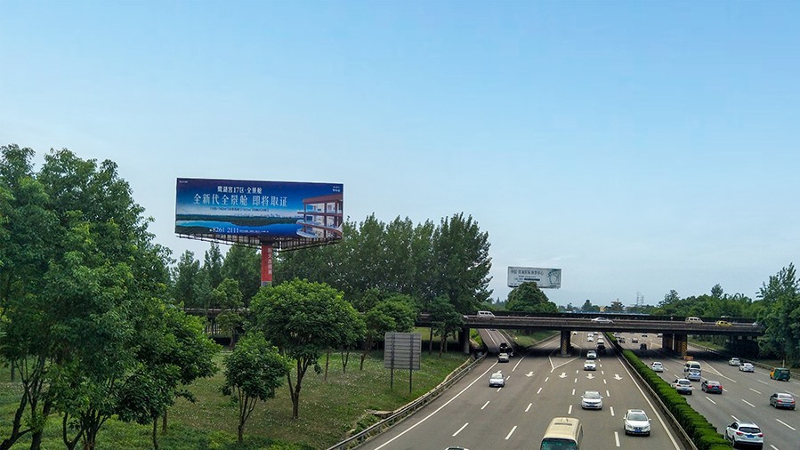 成溫邛高速廣告(收費站旁左):該戶外大牌覆蓋繞城高速車流、覆蓋經(jīng)青羊區(qū)、溫江區(qū)、崇州市、大邑縣至邛崍市的往返車輛。