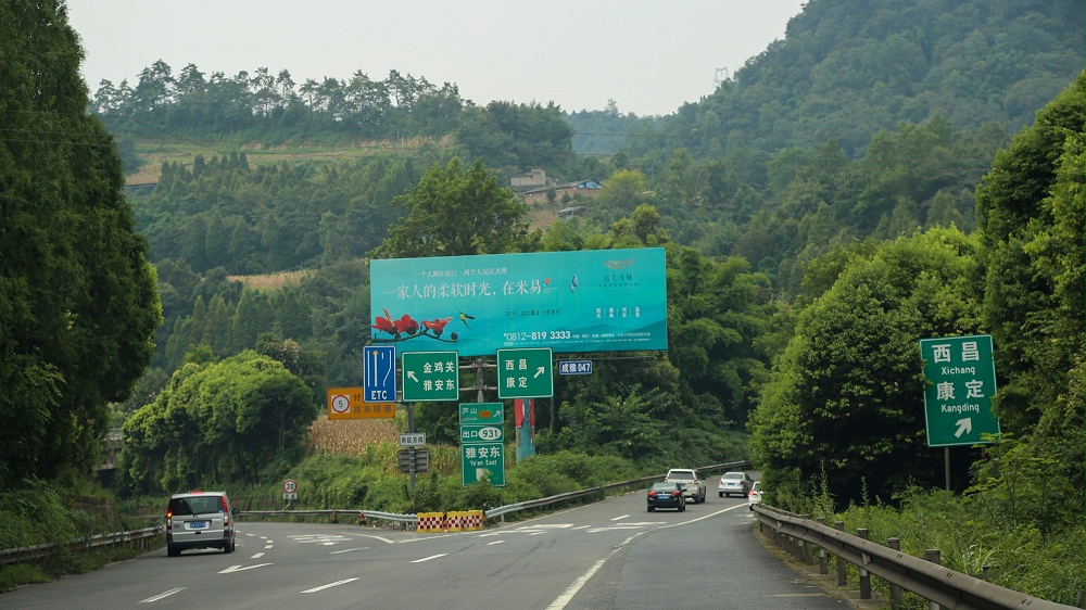 成雅高速廣告(金雞關出口):該戶外廣告與西昌康定交匯處。是通往雅安、西昌、攀枝花、康定等地區(qū)的重要交通要道,點位受眾面廣,品牌到達率高。